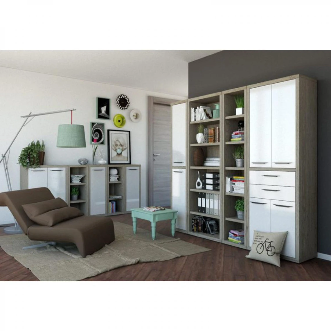 Sa couleur chêne cérusé apportera un côté moderne et naturel à votre pièce. Permettra de ranger vos livres et autres documents en toute simplicité. Vous avez la possibilité d’y rajouter une porte de la collection MEZZO en option.