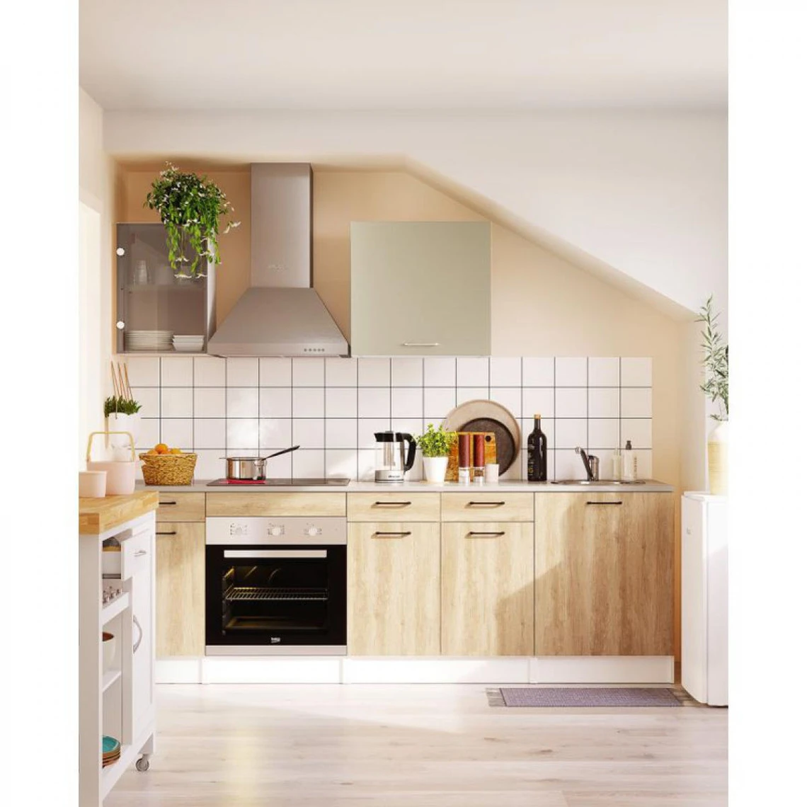Socle :panneaux de particules ép. 16 mm décor blanc. H. 12 cm. . Tiroir :1. H. 12,5 cm. Glissières à galet. . Façade :panneaux de particules mélaminés ép. 16 mm coloris chêne nebraska, plaqué 4 chants minces 0,5mm assortis. . Tablette :1. . Poignées :pvc coloris chromé mat. . Structure :panneaux de particules mélaminés ép. 15 mm coloris blanc. Chants visibles plaqués. Chants minces 0,5mm coloris blanc. . Plan de travail :panneaux de particules mélaminés ép. 22 mm coloris gris. 3 chants minces 0,5mm coloris gris et 1 chant kraft. . A monter soi-même. . Dimensions en cm :L. 40,1 – H. 85 – P. 60. . Façade porte (s) :1. H. 57,1 cm. Charnières métalliques Ø 35mm. . Dispo pcs détachées donnée fournisseur :6 mois. .
