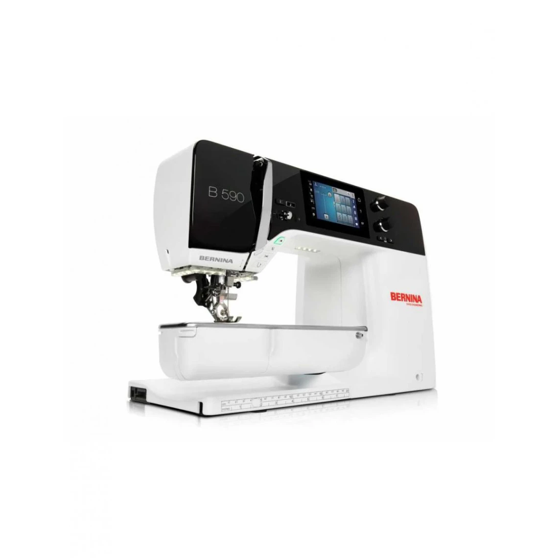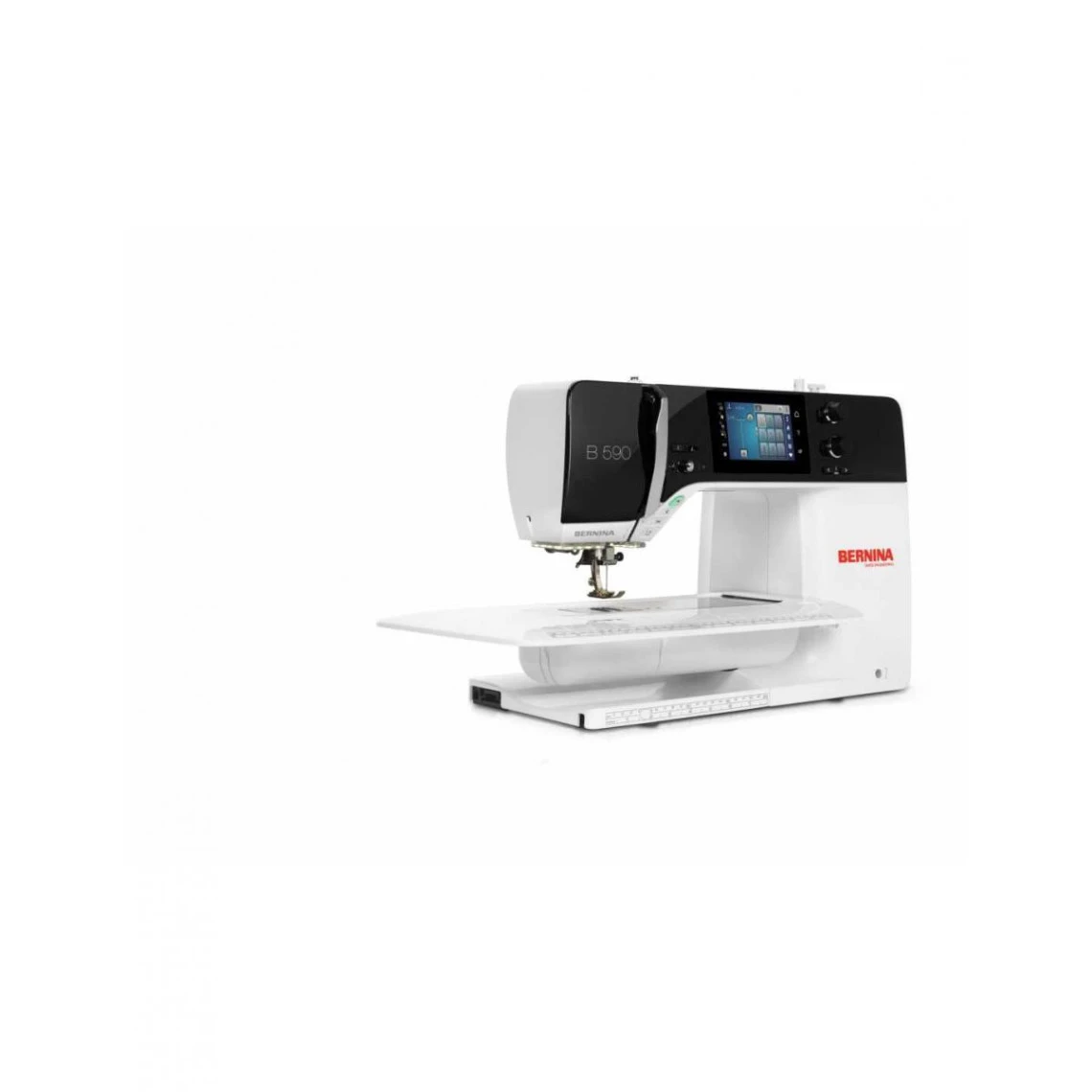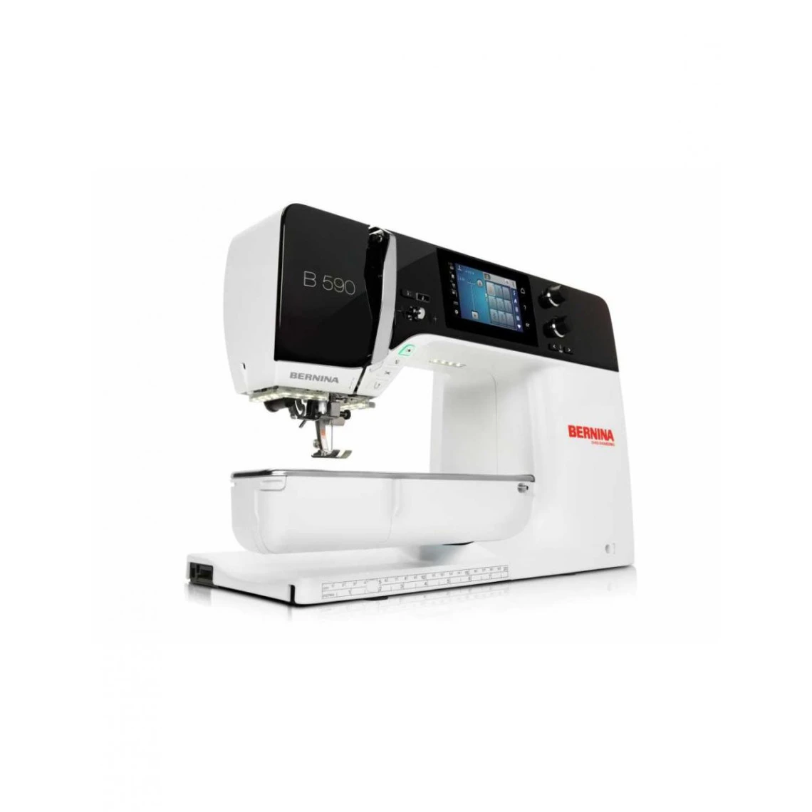 Machine à coudre et à broder BERNINA B590 série 5 – Garantie 5 ans La machine à coudre Bernina B 590 est une machine à coudre destinée aux couturières les plus exigeantes. Son large espace de travail (215 mm), son double entrainement, son pied de biche automatique, ses 9 mm de largeur de point, son coupe fils et sa vitesse de 1000 points par minute, donneront pleine satisfaction à toutes les couturières et quilteuses qui recherchent une machine à coudre puissante avec un point de couture aussi précis qu’une montre suisse. Caractéristiques : Système de crochet : BERNINA Hook Vitesse de couture maximale : 1000 points / minute Longueur du bras libre à droite de l’aiguille : 215 mm Écran couleur tactile de 10 cm Éclairage : 16 LED Boutons multifonctions Largeur maximale des points : 9 mm Longueur maximale des points : 6 mm 11 positions d’aiguille 2 supports pour bobines Enfilage automatique Relevage automatique du pied de biche Pied de biche automatique Fonction pivot 4 coupe-fil manuel Dual-Transport BERNINA Fonctionnalité BSR Touche marche/arrêt Régulateur de vitesse Nombre de points total : 1774 (alphabet inclus) 38 points utilitaires 18 boutonnières Boutonnière automatiques et à plusieurs étapes manuelles 500 points décoratifs 59 points de quilt 40 points de croix 9 alphabets à coudre Pour lancer la vidéo, cliquez dessus : Puissance et précision Double entrainement (Dual transport) Crochet B9 Bernina ( 9mm) Long bras Pied BSR Possibilité d’y ajouter un module de broderie Accessoires et Pieds inclus : Accessoires : Table à rallonge pour le bras libre Système mains libres FHS / levier de pied Pieds : Pieds pour points en marche arrière #1C, #1D Régulateur de points BSR Pied pour surjet #2A Pied traineau pour boutonnière #3A Pied pour fermeture à glissière #4D Pied pour points invisibles #5 Pied ouvert pour broderie #20C Également inclus : stylet tactile, House de protection, Boitier d’accessoires magnétique Garantie 5 ans (assistance téléphonique, pièces , main-d’œuvre, frais de transport – aller/retour – uniquement pour la France métropolitaine, la Corse et la Belgique).