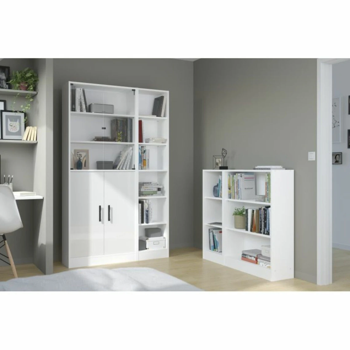 Avec un design sobre et épuré, Mayence est une collection complète de bibliothèques modulables pour composer soi-même un espace de rangement adapté à ses besoins.. Existe en version 1/2 bibus, bibus et colonne.. Existe en chêne clair et chêne noir..