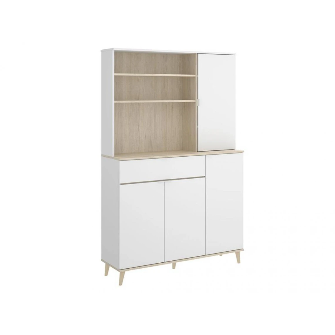 Points forts Vente-Unique Buffet de cuisine WAJDI – 4 portes, 1 tiroir et 3 niches – Blanc et chêne