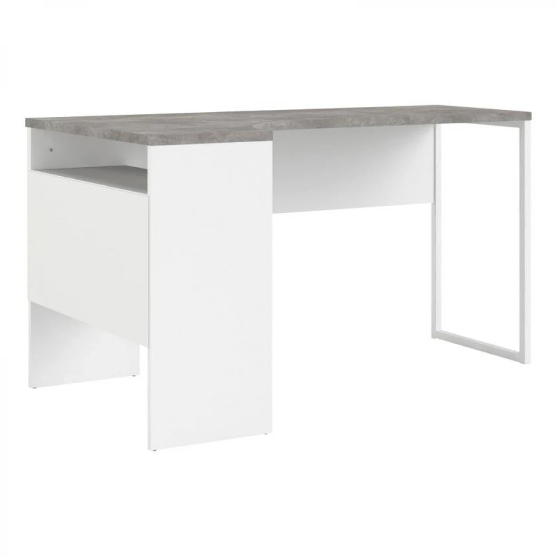 Tiroirs :2. . Finition :papier décor imitation béton et blanc. . Garantie :2 ans , Pièces . Plateau :Largeur du plateau hors retour = 48,5 cm. . Structure :panneaux de particules. . Piètement :en aluminium blanc. . A monter soi-même. . Dimensions en cm :L. 145 – H. 76,8 – P. 81 cm. . Dispo pcs détachées donnée fournisseur :NC .