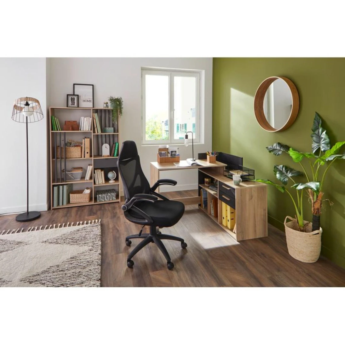 Points forts But Bureau d’angle OPTIMA 2 imitation chêne et noir