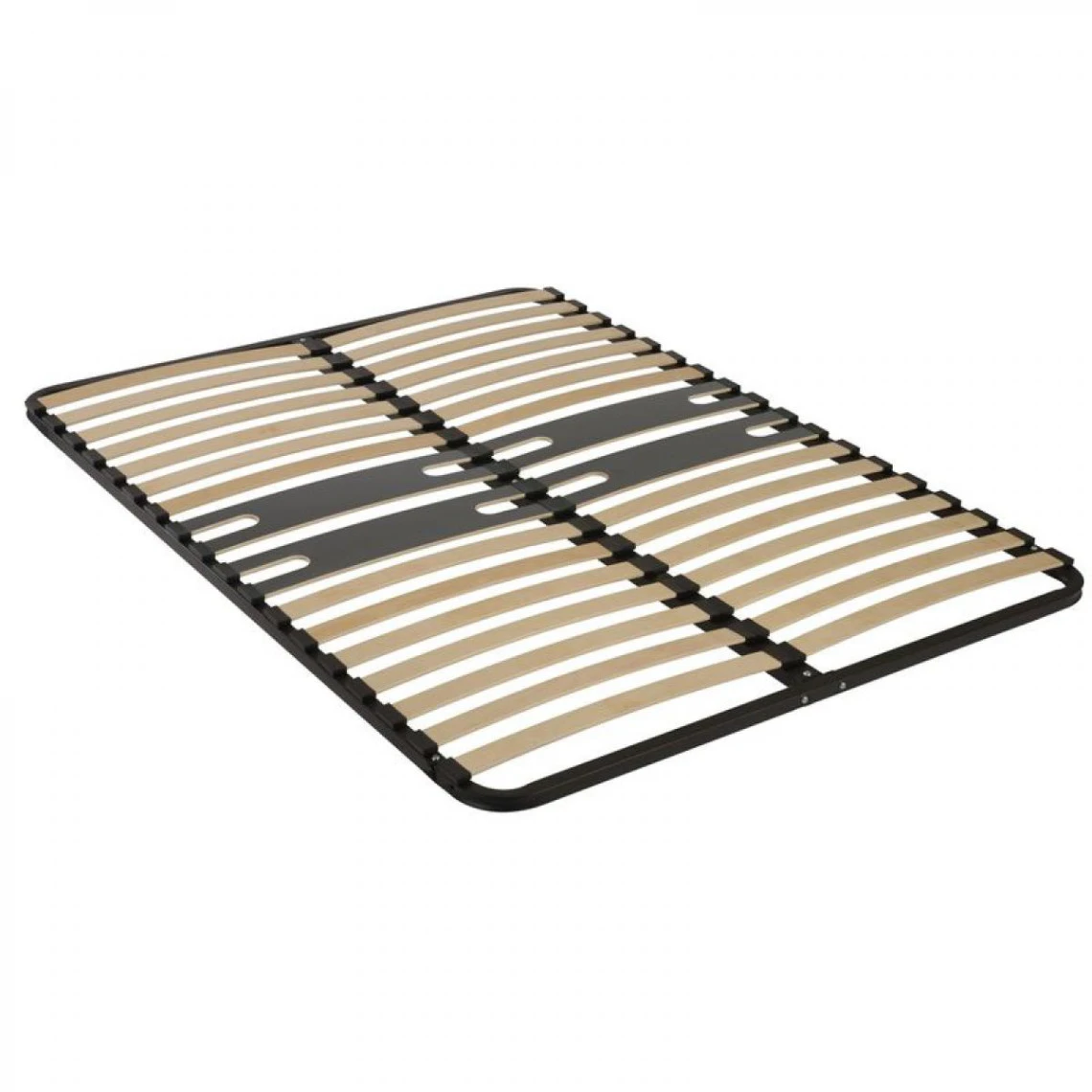 Sommier en kit, facile à transporter et à monter.. Embouts en plastique recyclés à plus de 90%, lattes certifiées FSC pour une gestion durable des forêts.. Le cadre à latte est équipé de 2 lattes extra-larges au niveau des lombaires pour un maintien renforcé..