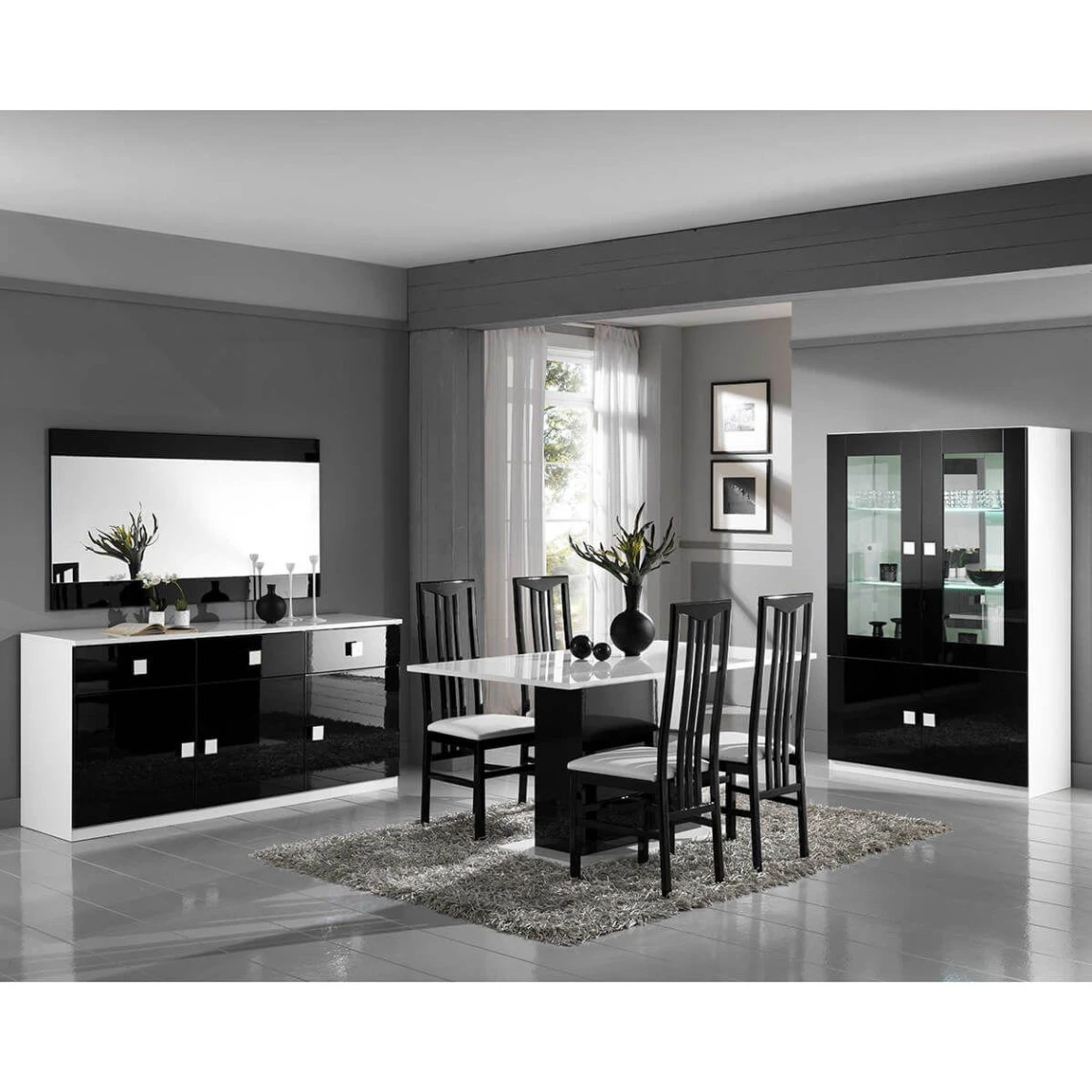 Points forts Altobuy COLUMBUS – Vitrine 4 Portes Laquée Brillant Blanc et Noir