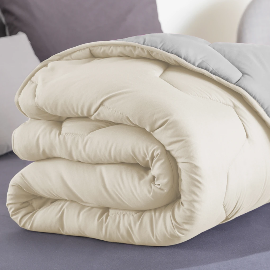 Points forts Idmarket Couette 220×240 CM ABBY bicolore beige et gris 300 gr