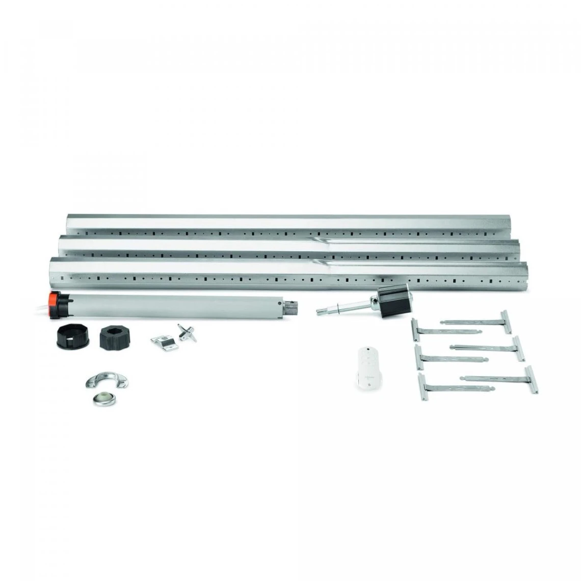 Ce kit prêt à poser est livré avec 1 moteur tubulaire filaire 30 Nm avec fins de course mécaniques et 1 interrupteur 3 boutons (montée / descente / stop).