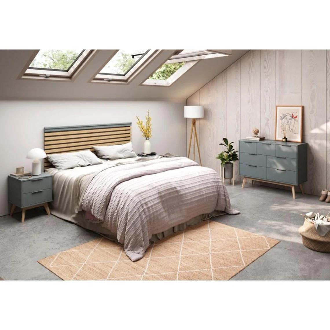 Points forts But Tête de lit 160 cm PISCO vert grisé et bois naturel