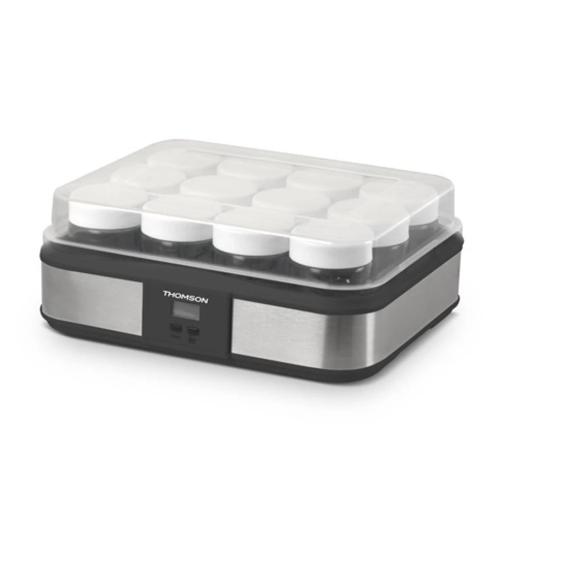 Points forts Thomson THOMSON – THYM912A – Yaourtière – 12 pots en verre – Ecran LCD – Minuterie (8h) – Couvercle transparent – Inox